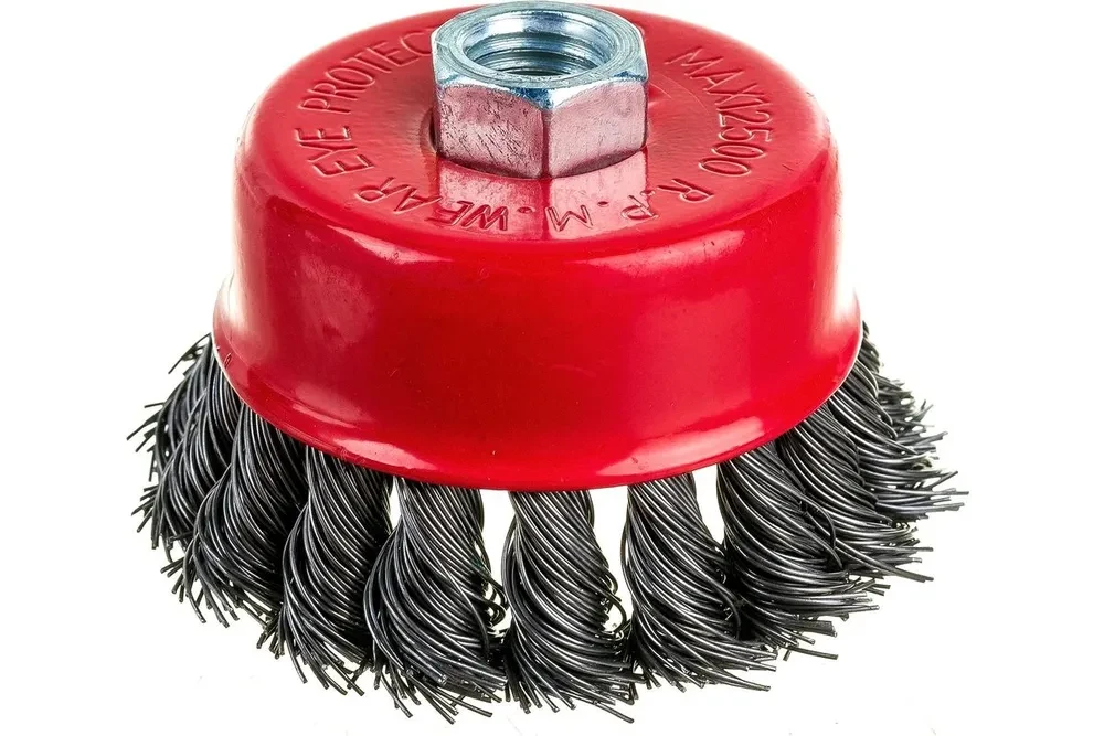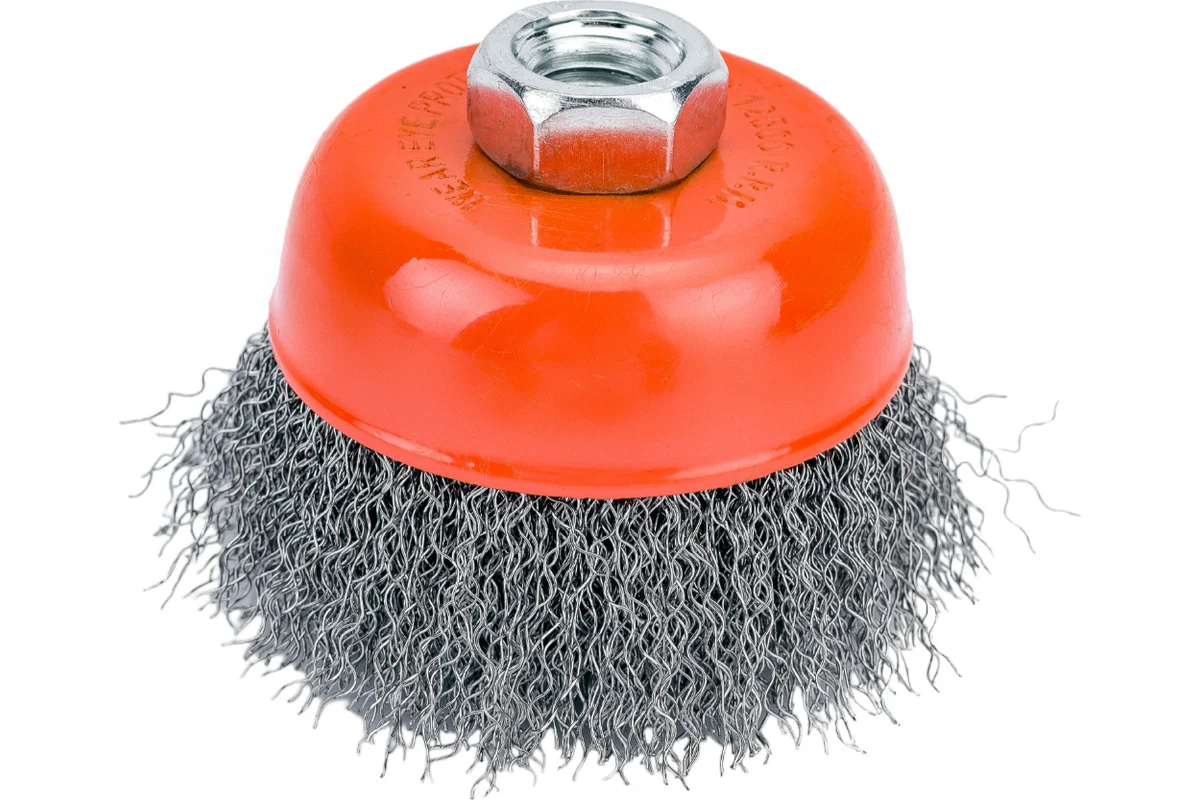 Чашечные щетки с гофрированной стальной проволокой для использования на УШМ с резьбой М14. Предназначены очистки поверхностей от ржавчины, подходит для зачистки швов после сварочных работ
